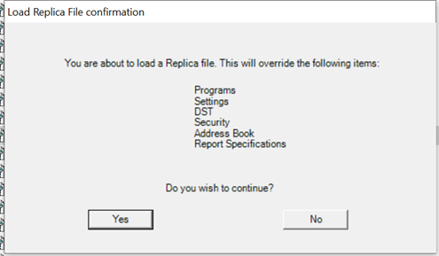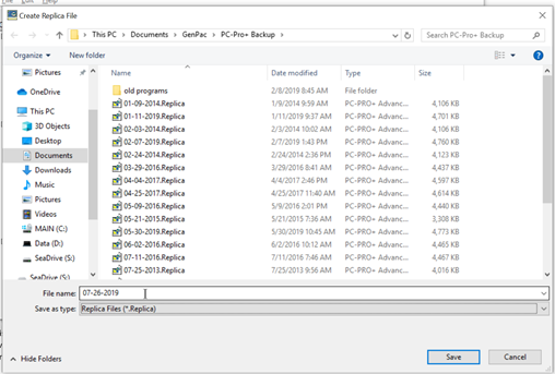 Replica files allow for a complete backup of the PC-Pro+ installation. Replica files are also commonly used by tech support reps to simulate customer environment as closely as possible. Replica files will make an exact duplicate of all programs, users, passwords and any other related settings in the system.