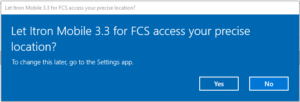 To begin, open Itron Mobile. When Itron Mobile first opens it will ask for permission to access the device's precise location. Click yes to allow this request.