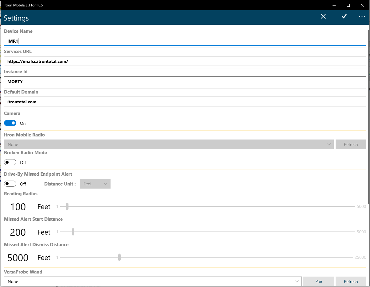 Now that all necessary options have been configured, it's time to save these settings to the device. Click the checkmark icon in the upper right hand corner of the Itron Mobile app screen to save these settings.