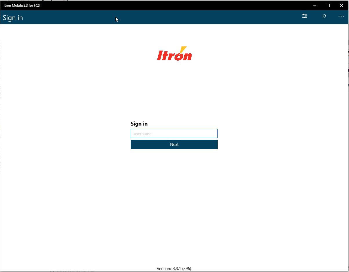 Once the settings have been saved, the device will load the Itron Mobile sign-in screen.
